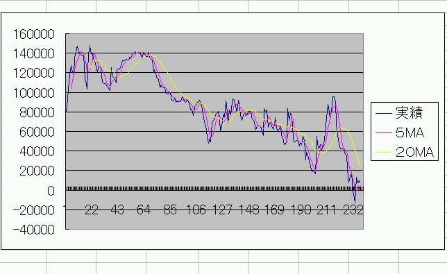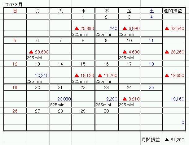 今月の収支 225先物mini 19戦5勝13敗1分け トータル▲61,290円