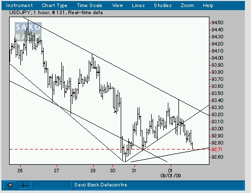ドル円 93.10LON → 92.50LC