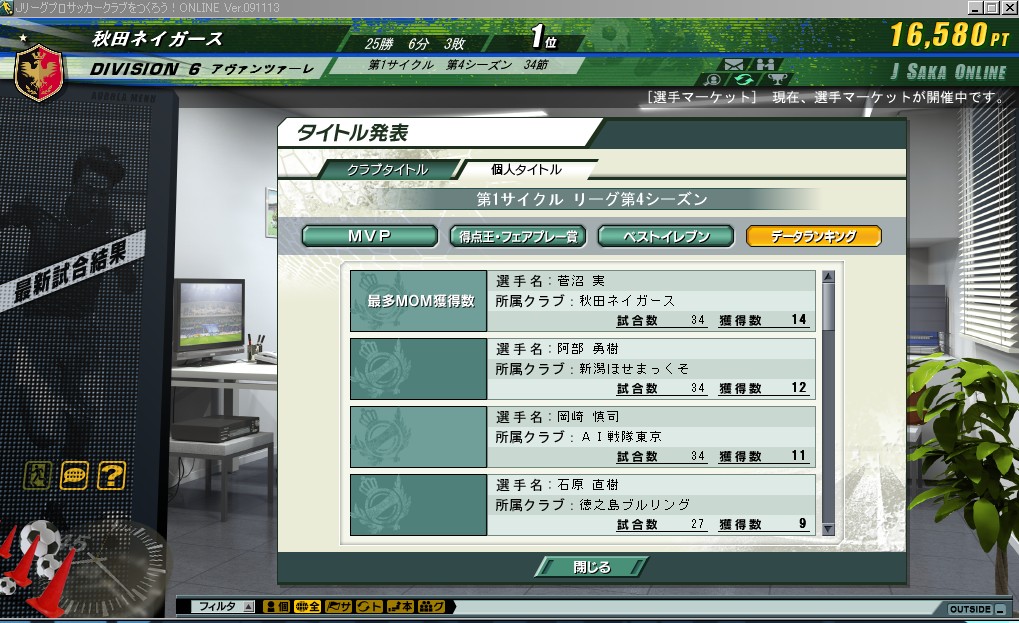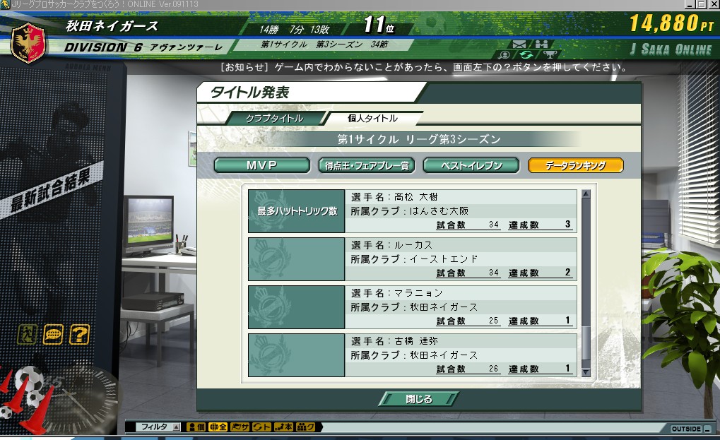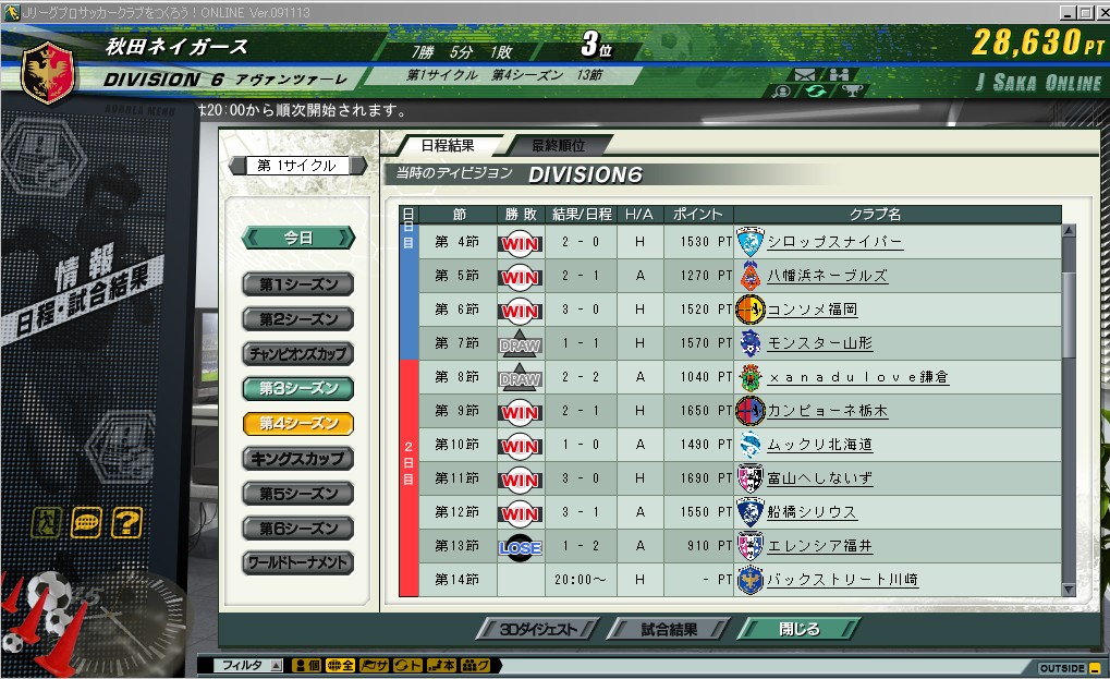 引き分けを挟んで7連勝で3位に浮上ktkr