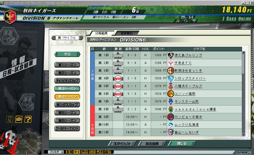 第一サイクル第3シーズンの結果