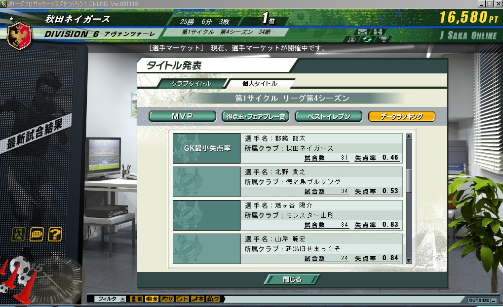 GKは都築が復調してきて